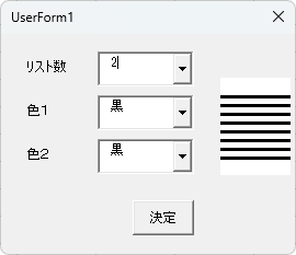 - 「リスト数」「色1」「色2」を選択