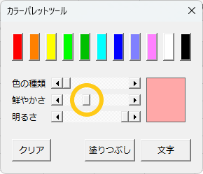 フォームを開いたまま色を調整でき、HSV(色の種類・鮮やかさ・明るさ)を直感的に調整できるので、スクロールバーを動かすだけで理想の色に近づけます。色選びが楽しくなる便利ツールなので、ぜひ試してみてください。